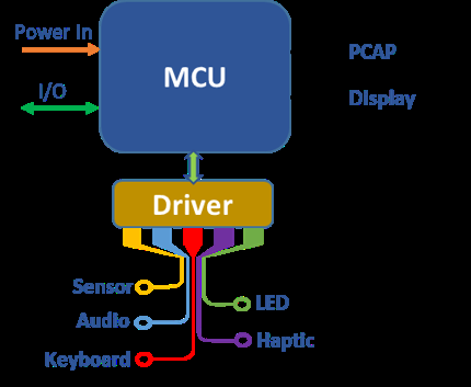 完整的(de)交互系(xì)統,包(bāo)含用(yòng)户輸入(rù)與(yǔ)設備反(fǎn)馈两个(gè)方(fāng)面(miàn),在(zài)輸入(rù)方(fāng)式部(bù)分(fēn),不(bù)僅僅是(shì)通(tòng)过(guò)觸摸,也(yě)包(bāo)括傳統的(de)機(jī)械方(fāng)式或(huò)語(yǔ)音(yīn)手(shǒu)勢等,設備的(de)反(fǎn)馈包(bāo)含了(le)輸入(rù)後(hòu)的(de)結果(guǒ)确認以(yǐ)及(jí)設備執行結果(guǒ)的(de)反(fǎn)馈,包(bāo)含通(tòng)过(guò)觸覺(振動(dòng)反(fǎn)馈)、視覺(顯示,LED指示等)和(hé)聲音(yīn)(蜂鳴器)。因(yīn)此(cǐ),我(wǒ)们(men)通(tòng)过(guò)分(fēn)析常見(jiàn)的(de)交互需求,把(bǎ)此(cǐ)系(xì)統概括为(wèi)右(yòu)侧图(tú)示: